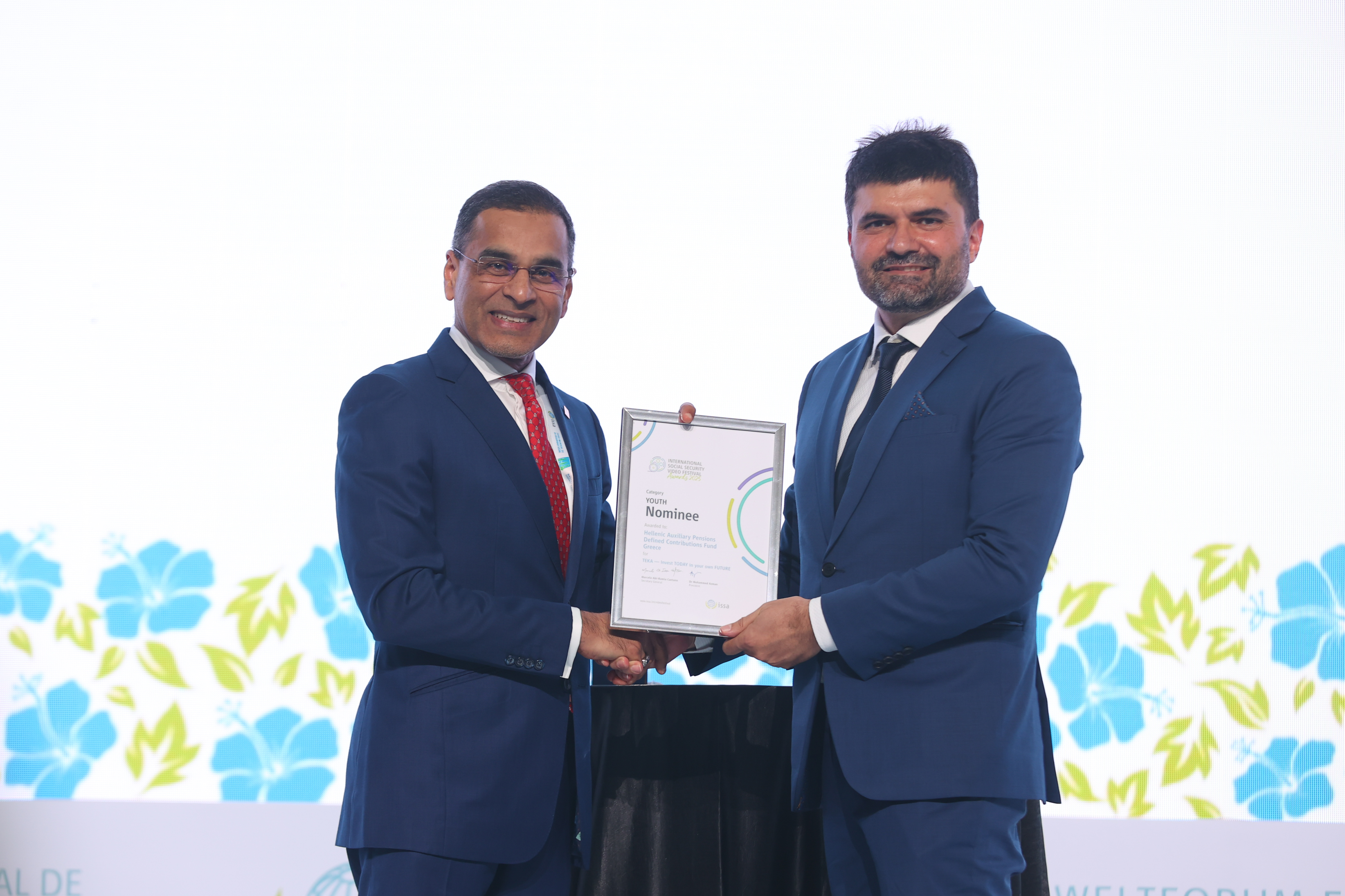 Η απονομή πραγματοποιήθηκε τη Δευτέρα 29 Σεπτεμβρίου 2025, στο πλαίσιο του World Social Security Forum, που διοργανώθηκε στην Κουάλα Λουμπούρ της Μαλαισίας από τη Διεθνή Ένωση Φορέων Κοινωνικής Ασφάλισης ISSA, τον κορυφαίο διεθνή οργανισμό κοινωνικής ασφάλισης. Το βραβείο παρέλαβε εκ μέρους του ΤΕΚΑ ο Επίτιμος Γενικός Πρόξενος της Ελλάδας στη Μαλαισία, Στέλιος Πλαϊνιώτης.